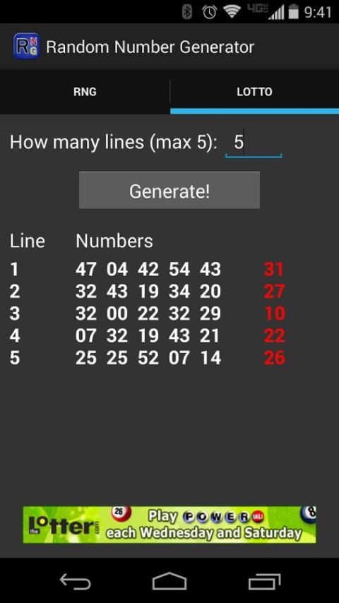 यादृच्छिक संख्या जनरेटर अब आप बिजली की गेंद टिकट जीतने की संख्या उन उत्पन्न चलो! हम किसी भी सुझाव एप्लिकेशन बेहतर बनाने के लिए ईमेल करें. मैं भविष्य में और अधिक लॉटरी प्रकार जोड़ने के लिए उम्मीद कर रहा हूँ. क्या आप चाहते हैं मुझे बताओ! आप नीचे अपनी ईमेल पता मिल जाएगा.