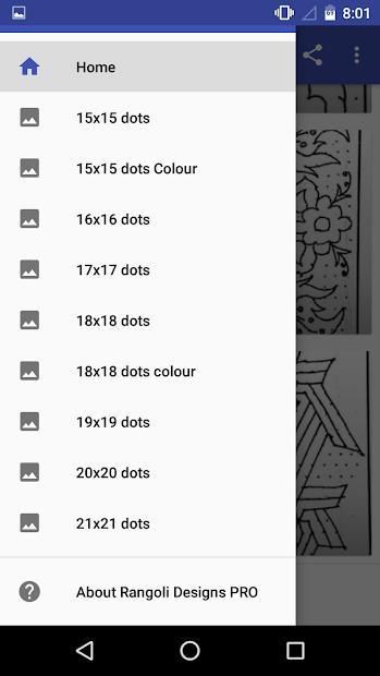 7. आसान स्क्रॉल और रंगोली डिजाइन नेविगेट करने के लिए।