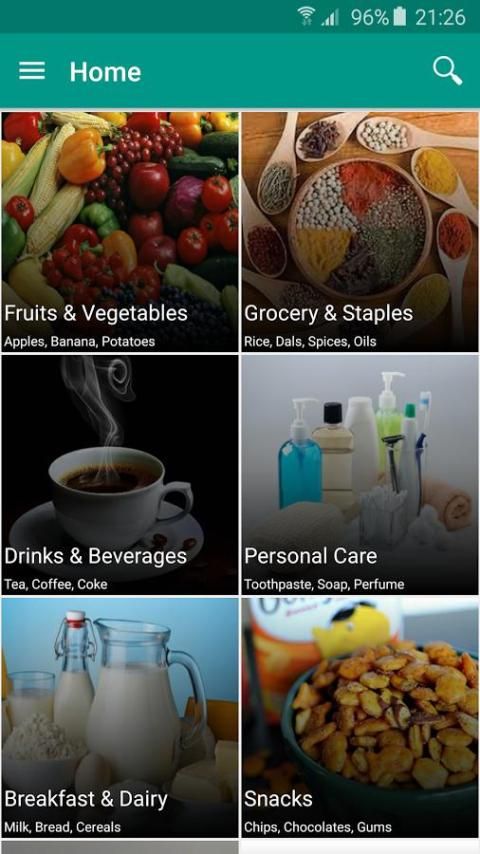 • श्रेणियाँ ब्राउज़ करें: से आदेश और जल्दी से प्रसव पाने के लिए कई श्रेणियों (किराने का सामान, नमकीन, फल) से चुनें।