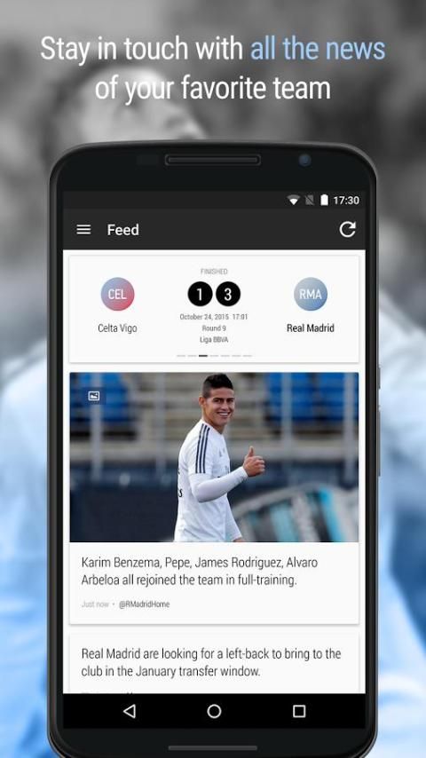 आप जहां भी हैं अब आप सभी समाचार और अपने पसंदीदा फुटबॉल क्लब के मैचों का पालन कर सकते हैं! अंग्रेजी में एक नया अचल Live एप्लिकेशन - हर लॉस Merengues प्रशंसक के लिए बिल्कुल मुफ्त!