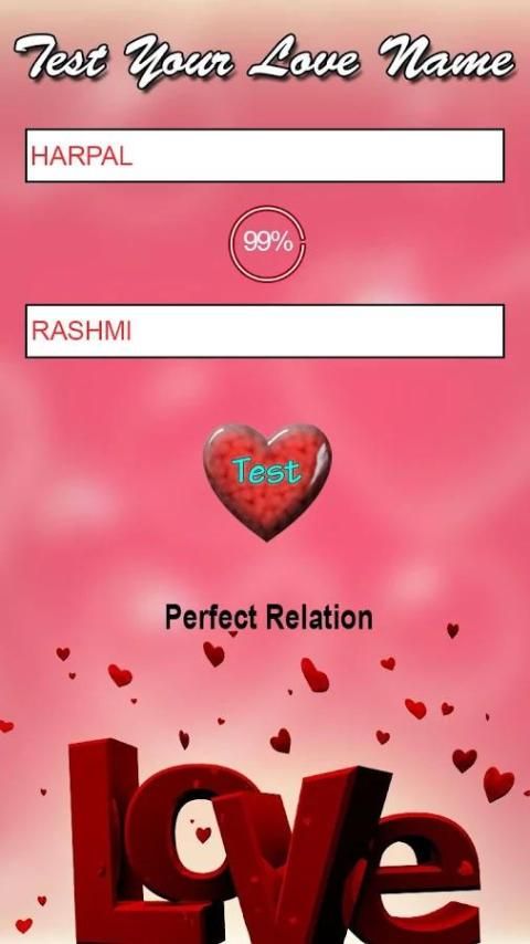 असली प्यार परीक्षण कैलकुलेटर एक प्यार कैलकुलेटर जो प्यार परीक्षण है जो आपको प्यार कैलकुलेटर अनुप्रयोग में सभी वैज्ञानिक कारण के पीछे पूरी तरह से जोड़ों अनुकूलता दिखाएगा में सबसे उन्नत विकास है।