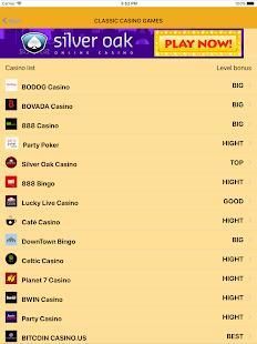 - सबसे अच्छा कैसीनो की सूची: पोकर, सट्टेबाजी के खेल, स्लॉट, रूलेट, ब्लेक जेक और बिंगो के रूप में अन्य क्लासिक खेल।