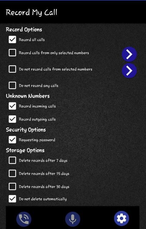 - चयन जो फोन कॉल्स रिकॉर्ड किया जाएगा और जो नहीं