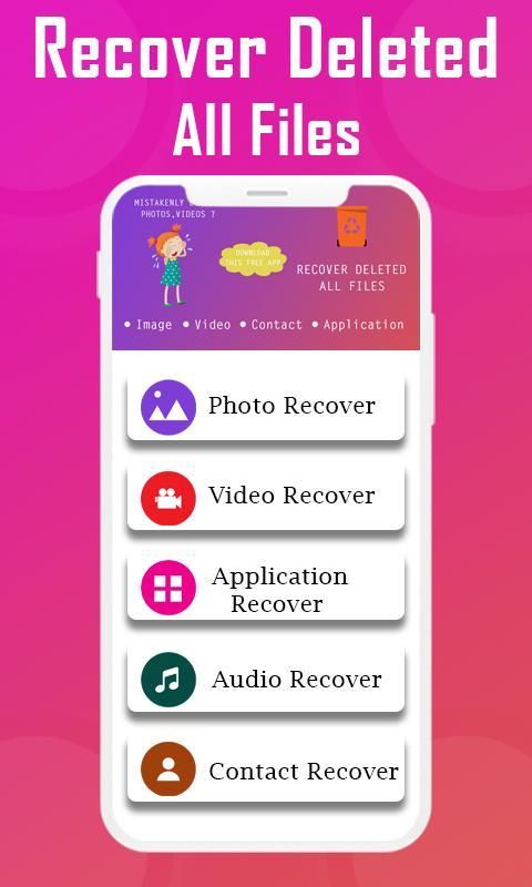 Download the all new Recover Deleted All Files app for FREE and never worry about deleting Photos ,Videos, Contact and Audio mistakenly.