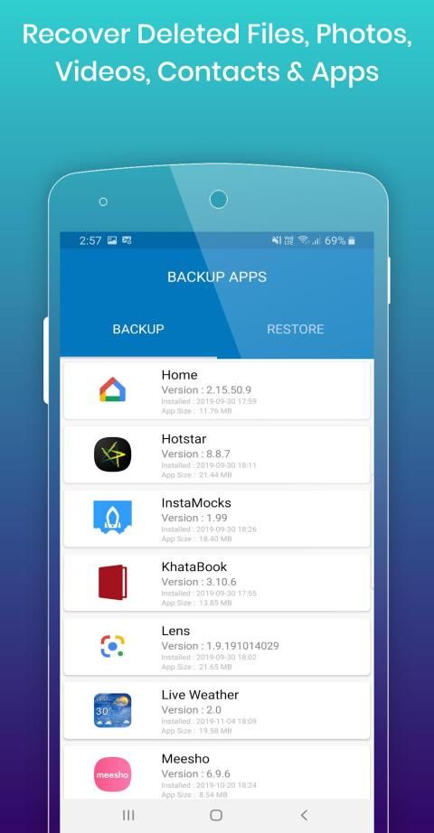 यह ऐप आपको आपके सभी वीडियो का बैकअप लेने और बैकअप से वीडियो को पुनर्स्थापित करने की अनुमति देता है।