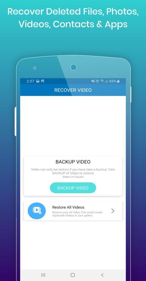 Video Recovery or Video Restore With this Photo & Video Restore or Photo Video Recovery app one can Restore Deleted Videos.