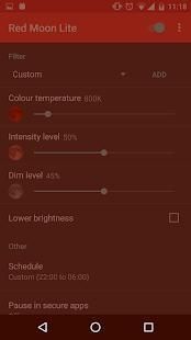 * लाल चंद्रमा लाइट के तीन आसान स्लाइडर का उपयोग करने के लिए धन्यवाद, आप अपनी स्क्रीन पर पूरा नियंत्रण है। तुम भी वास्तव में क्या रंग आप फिल्टर होना चाहते हैं चुन सकते हैं।