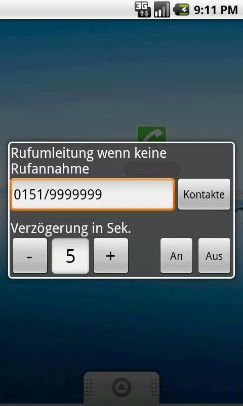Simply enter your phone number and then choose the delay for activating the call forwarding.