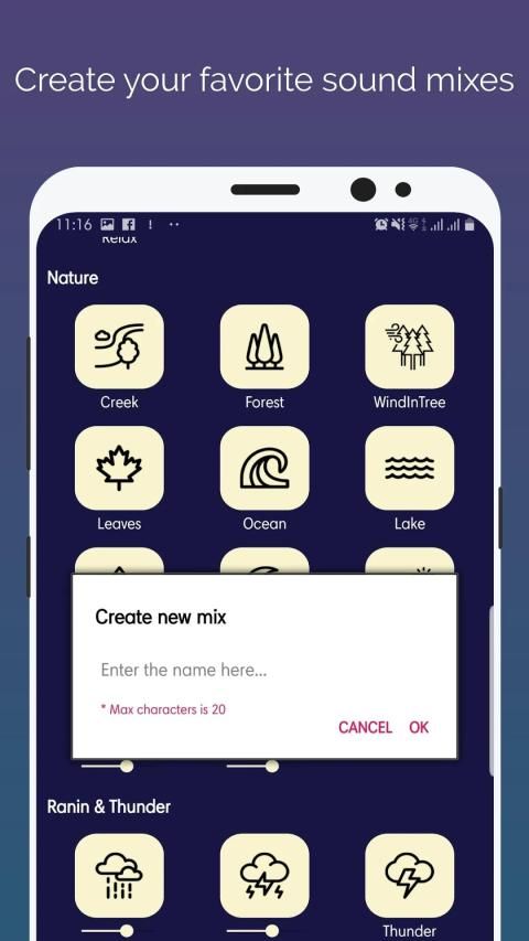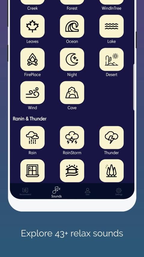 Sleep Sounds brings great collection of HD relax melodies that can be mixed into the perfect relaxing ambiences. You can choose from different types of rain, nature sounds, city sounds, animal sounds or instruments.