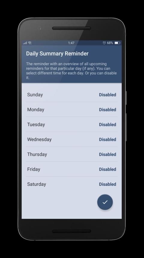अपने दवा लेने के लिए एक दैनिक रिमाइंडर सेट करें। एक बार सेट और आप फिर से याद करने की आवश्यकता नहीं होगी!