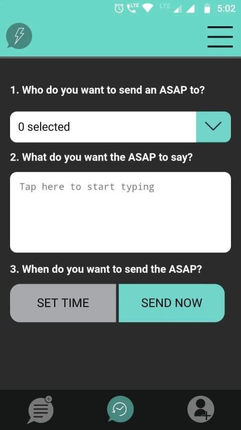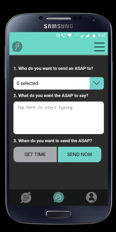 एक बार स्थापित और आमंत्रित किए जाने के बाद, या तो सदस्य दूसरे को ASAP संदेश भेजने में सक्षम है। आने वाला ASAP दूसरे की स्क्रीन पर दिखाई देगा और अलार्म को तब तक आवाज देगा जब तक ASAP संदेश स्वीकार नहीं किया जाता है (ध्यान दें: यह ऐप फोन को लॉक नहीं करता है)। जब स्वीकार किया जाता है, तो प्रेषक को एक सूचना प्राप्त होगी कि संदेश देखा गया है इसलिए यह सुनिश्चित किया जा सकता है कि रिसीवर ASAP संदेश से अवगत है।