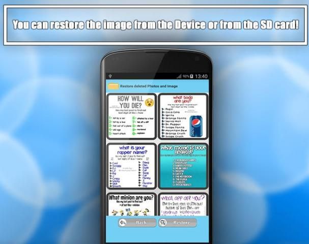 यह नष्ट कर दिया तस्वीरें और छवि आवेदन बहाल सब नष्ट कर दिया तस्वीरें बहाल करने में मदद मिलेगी, Android के लिए इस सरल मुक्त पुनर्स्थापित छवि अनुप्रयोग के साथ अब अपने नष्ट कर दिया तस्वीरें ठीक!