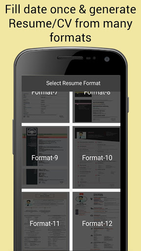 स्वरूपण और संरेखित करने में अपना समय बैठने और बर्बाद करने की कोई आवश्यकता नहीं है फिर से शुरू करें क्योंकि ऐप में 6 प्री-डिफ़ॉल्ट प्रारूप हैं, व्यक्तिगत रूप से फिर से शुरू और सीवी के लिए। फिर से शुरू करने वाले निर्माता बिल्डिंग एप्लिकेशन का उपयोग करके आपको आसानी से आसानी से डिजाइन किए गए और अच्छी तरह से स्वरूपित फिर से डिजाइन करने का आश्वासन दिया जा सकता है।
