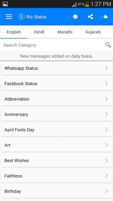 बेस्ट WhatsApp स्थिति 100000+ संदेश और प्यारा शायरी और सामाजिक उद्धरण का एक बड़ा सेट है।