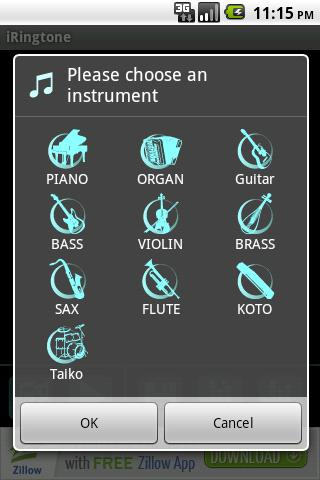 Create ringtones from your own music library, or record new ones on the fly.Unique features:Able to cut best piece from mp3 to save as ringtone.Generate sound effect such as fade inout.The first ringtone editor to support midi, able to change 128 different instruments.The first AI ringtone GeneratorThis application is compatible with most Android devices running system versions 1 6 39;donut39; through 2 3.x 39;gingerbread39;.