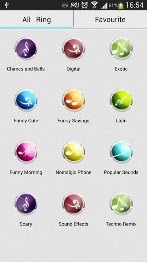 प्यारा रिंगटोन अनुप्रयोग अजीब रिंगटोन की एक किस्म प्रदान करता है।