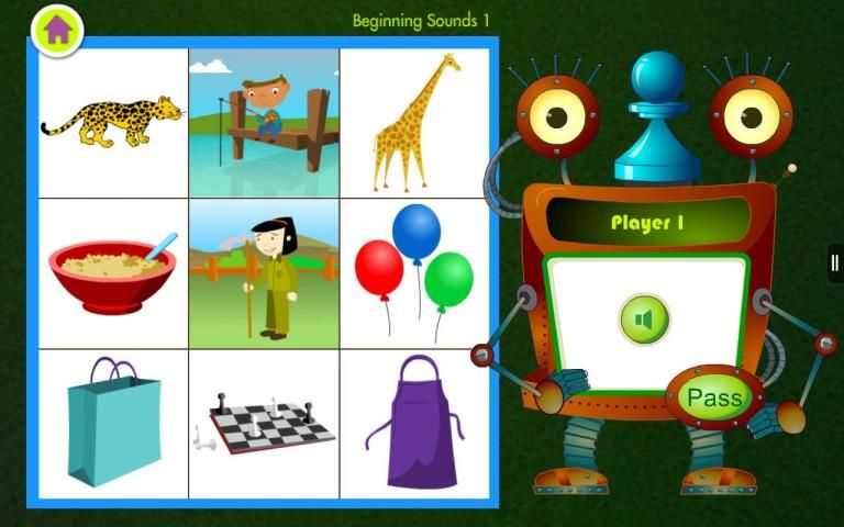 प्रैक्टिस पहचान पत्र खेल बिंगो के इस मज़ा संस्करण में शब्द लगता है और लगता है! Quirky रोबोट के खिलाफ एकल खेलने या एक दोस्त चुनौती देने के लिए आगे और पीछे खेल गुजरती हैं. बालवाड़ी या अमेरिकी अंग्रेजी पढ़ने के लिए सीखने किसी के लिए तैयारी 5 साल के बच्चों के लिए - रोबोट बिंगो 3 के लिए एक आदर्श खेल है.