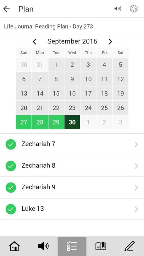 * नि: शुल्क ऑडियो बाइबिल: आप तुरंत दैनिक भक्ति योजना को सुन रहे हैं सुनने के लिए क्लिक करें और। आप किसी भी पारित होने आप चाहते हैं देख सकते हैं, सुनने टैब हर समय नीचे दाहिने हाथ कोने में है।