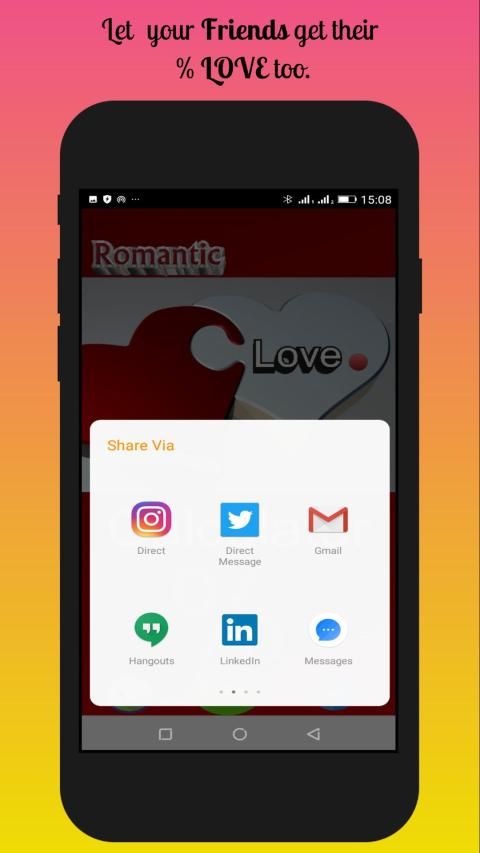 यह ऐप प्रेमी या उन लोगों के लिए है जो प्यार में पड़ना चाहते हैं। यह आपके बीच सह-अस्तित्व वाले% प्रतिशत प्रेम की गणना करने में आपकी सहायता करता है।