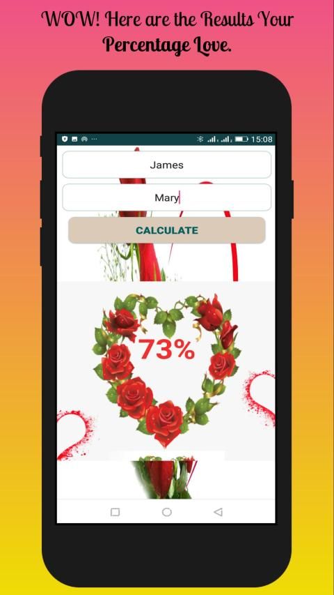 This App is for Lovers or those intending to fall in Love. It helps you calculate the % Percentage Love that coexist between you.