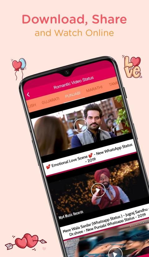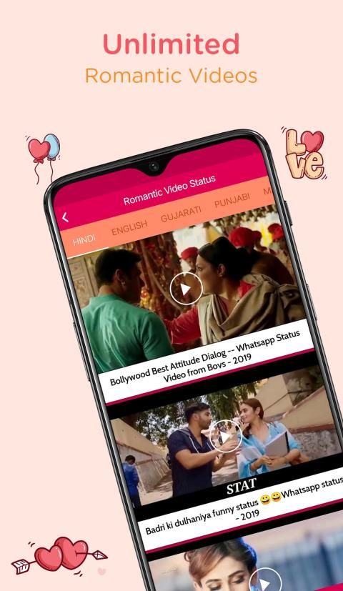 - ऐप ऐप स्थिति के लिए रोमांटिक वीडियो गाने
