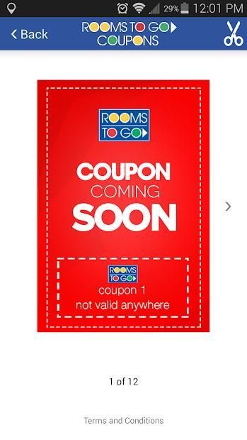 Download the Rooms To Go app and get Rooms To Go coupons for all holidays deals! Be sure to check back frequently to maximize your savings and take advantage of all Rooms To Go special offers.