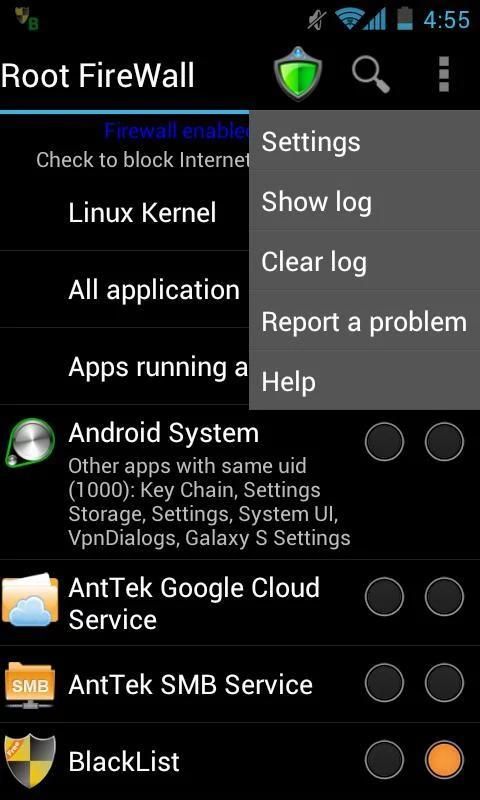 For each application, you can select to block Internet access via either 3G or WiFi channel. It’ s extremely helpful if you don’t have an unlimited data plan. It saves you from over-billing because of background application accessing Internet such as Google+, Google Play or Amazon Music.