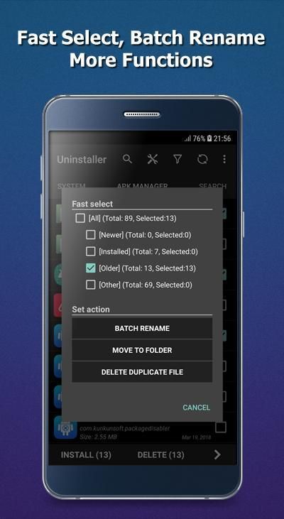 ✔ Apk Manager - manage apk files on SDCard with delete, instal, rename, move to folder, delete duplicate file function