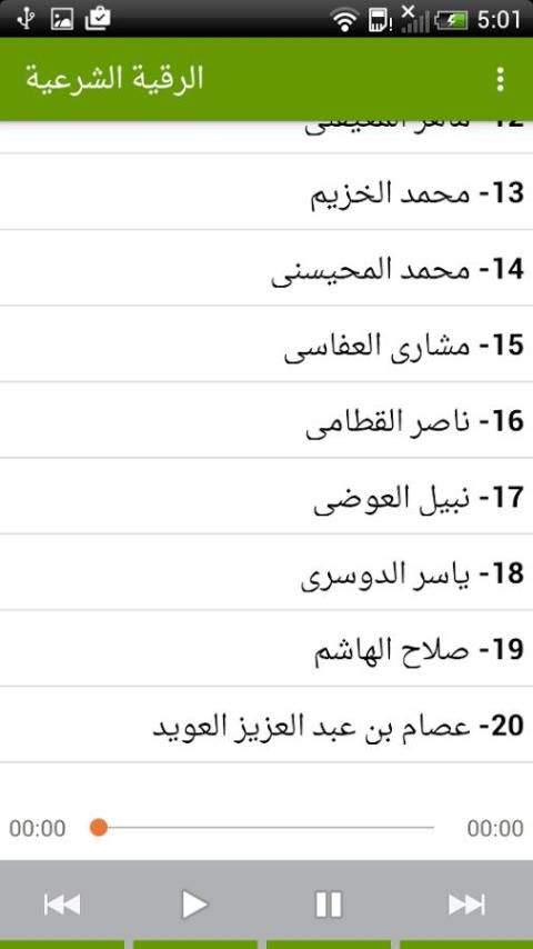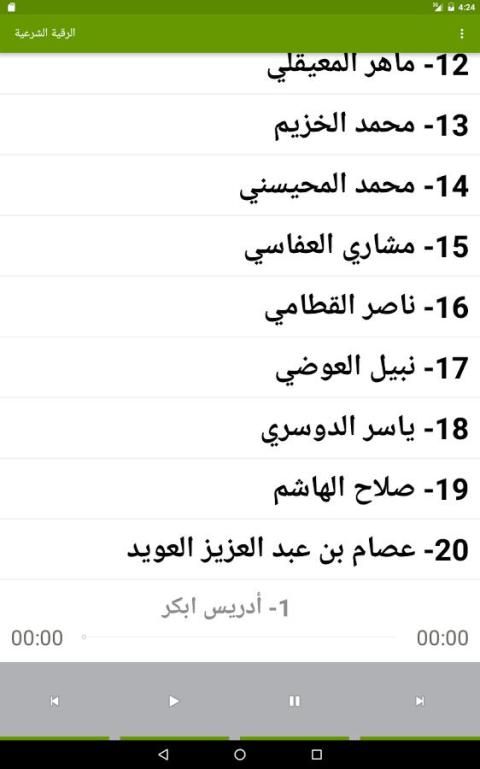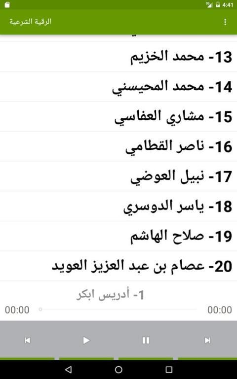यह आवेदन आप कई reciters द्वारा सुनाई "Roqya Char3iya" को सुनने की सुविधा देता है।