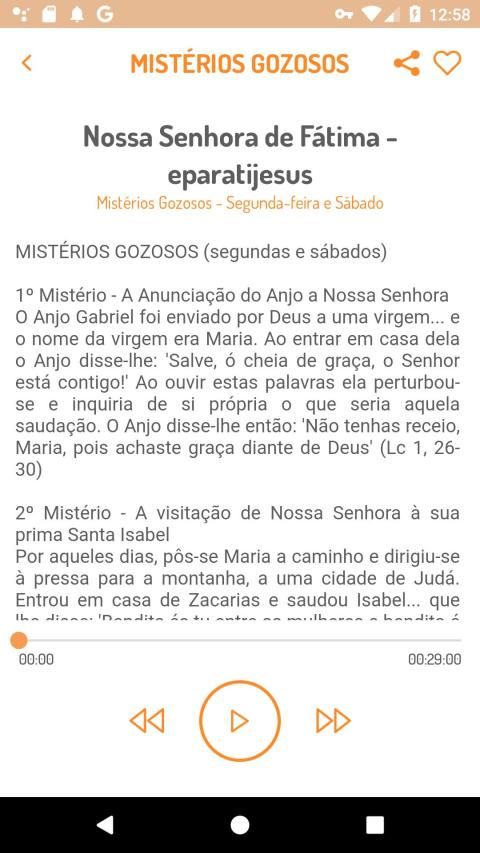 Os mistérios são automaticamente rezados no Rosário, de acordo com o dia da semana indicado no seu celular;