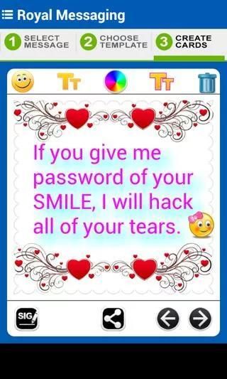 Now you need not to work on writing the messages at all. Just choose the best messages as per your feelings and occassions, select the template, add your icons and stickers and share it with your friends available anywhere like Facebook, whatsapp, email or any existing medium with damn simple interface.