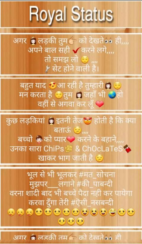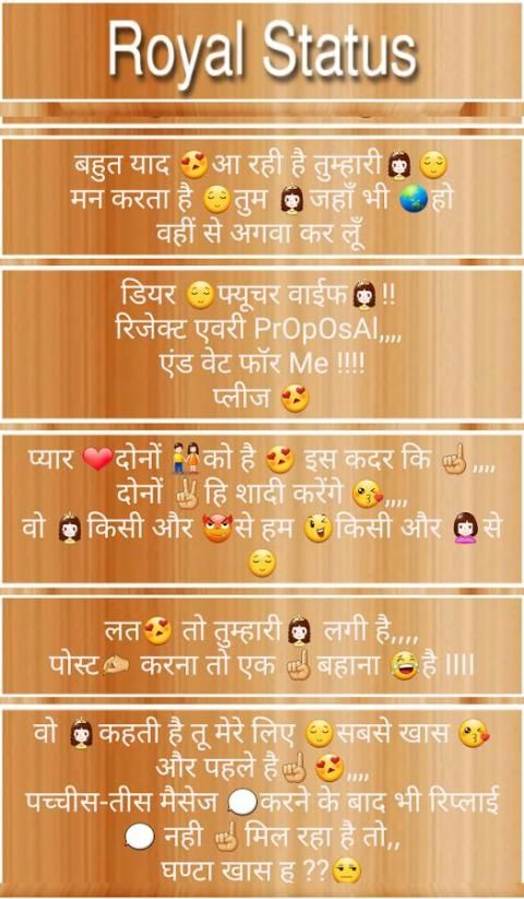 उपयोगकर्ता दैनिक उनके Whatsaap और फेसबुक और अन्य सामाजिक साइटों में नए और अद्वितीय स्थिति संदेश सेट कर सकते हैं।