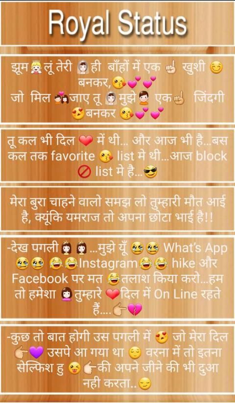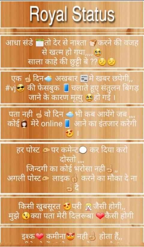 रॉयल स्थिति आवेदन अन्य सामाजिक साइटों की तरह Whatsaap और फेसबुक के लिए स्थिति में होते हैं।