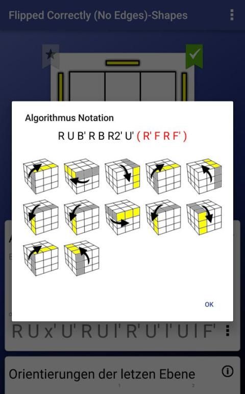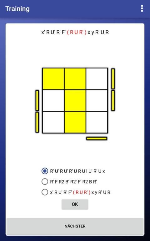 * प्रशिक्षण फंक्शन अपने सीखा OLL / पीएलएल परत-एल्गोरिदम प्रशिक्षित करने के लिए, उन्नत रोटेशन मोड और एक एल्गोरिथ्म पूछताछ-प्रश्नोत्तरी सहित