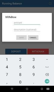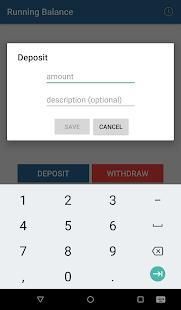 रनिंग शेष राशि तो आप जानते हैं कि वास्तव में आप कितना उपलब्ध है आप एक ही खाते के लिए अपने सभी जमा और निकासी रजिस्टर करने के लिए अनुमति देता है।