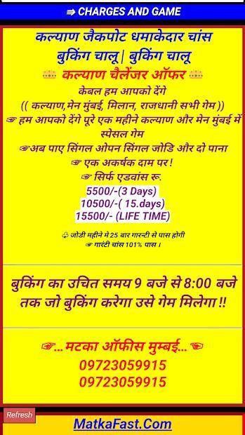 कल्याण मटका | मटका परिणाम | कल्याण मटका टिप्स | सट्टा मटका | MATKAFAST.COM | मटका पैना जॉडी आज |