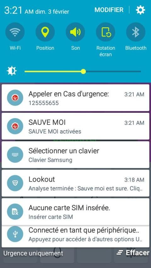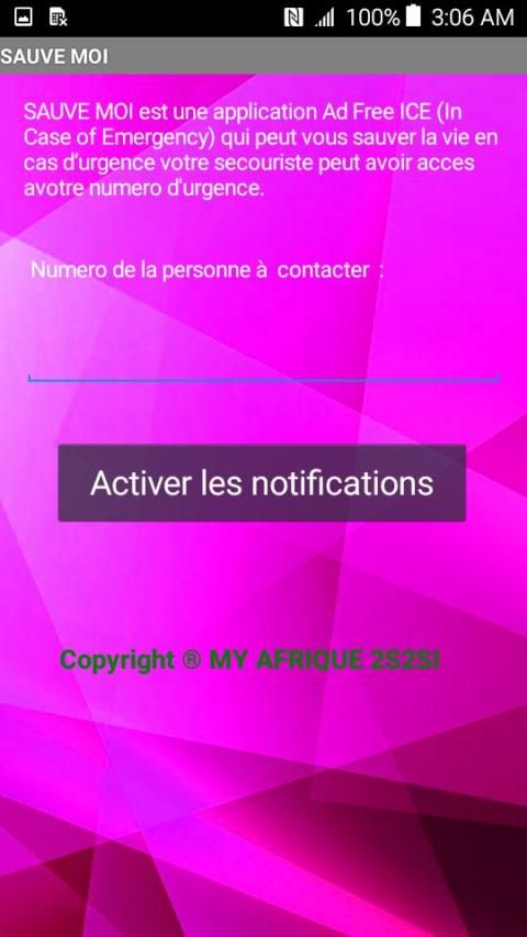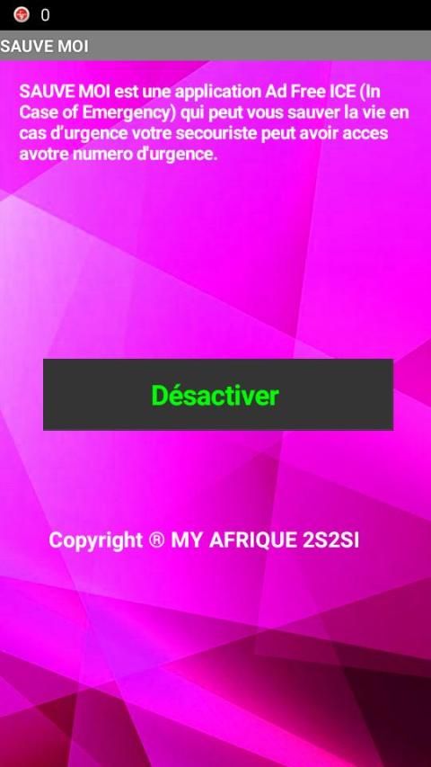 L'application "SAUVE MOI" vous aide à communiquer en cas d'urgence. Il affiche les informations de contact d'urgence dans la barre de notification et vous permet de les contacter.