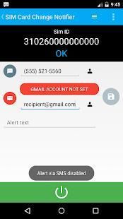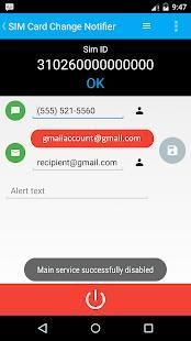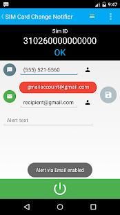 यदि एक नया सिम कार्ड डाला जाता है या हटा दिया जाता है इस एप्लिकेशन को एसएमएस या ईमेल के माध्यम से एक चेतावनी भेजता है।