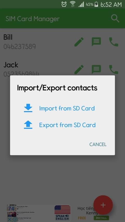 - सिम कार्ड में संग्रहीत सभी संपर्कों को देखें।