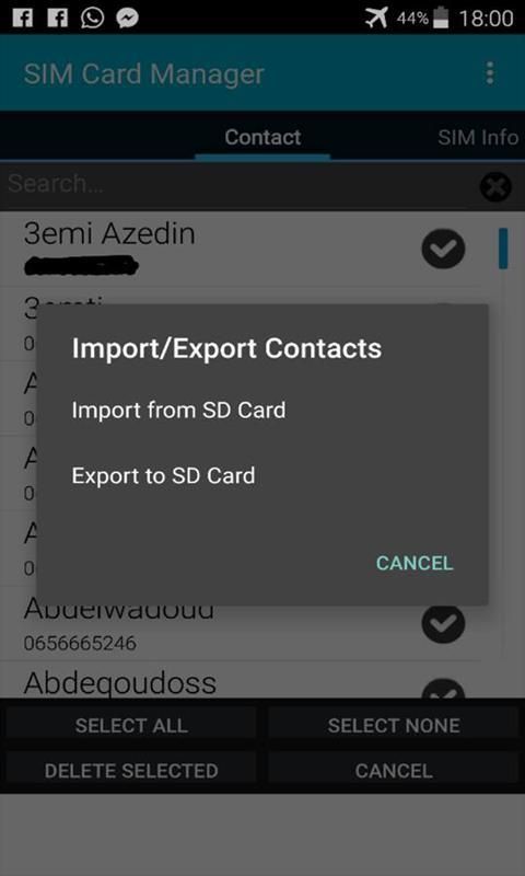 संपर्क # आयात / निर्यात एसडी कार्ड के लिए