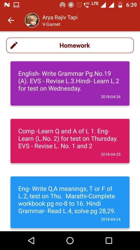 - Child daily homework.