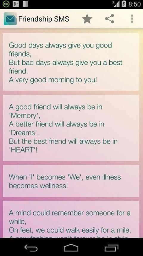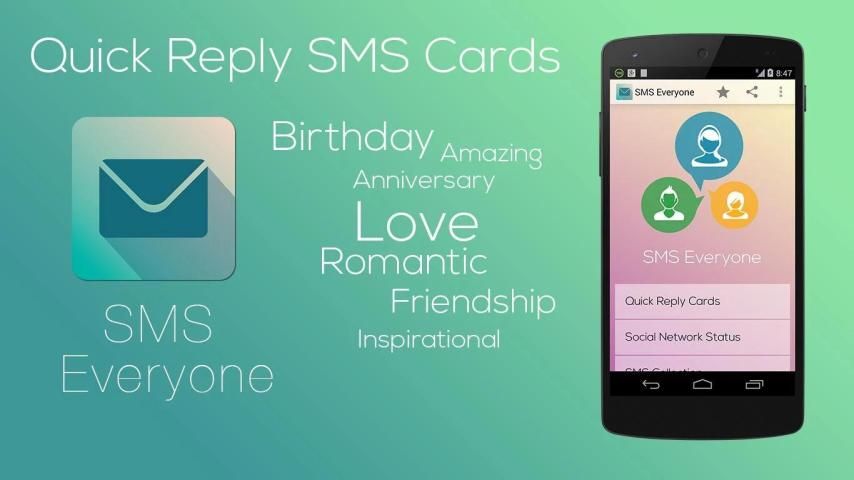 SMS Everyone App is the best ever designed SMS Messages App that helps you discover & share Social Network Status and SMS Messages with your friends, relatives & loved ones. It has the Largest SMS Collection of text messages. If you want to laugh, say sorry, inspire a friend, congratulate someone, send birthday wishes, all you need to do is select from the appropriate category and choose the one the best suits your mood.