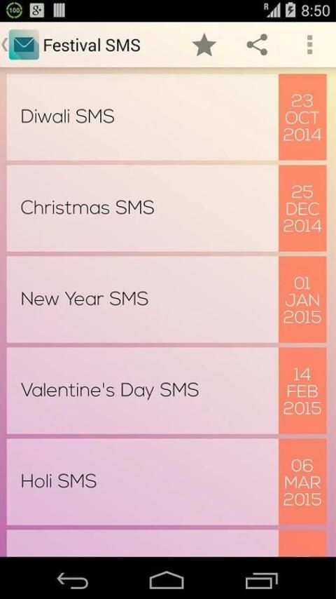 - Festival SMS with dates : Diwali SMS, Christmas Wishes, New Year Wishes, Valentine's day & more.