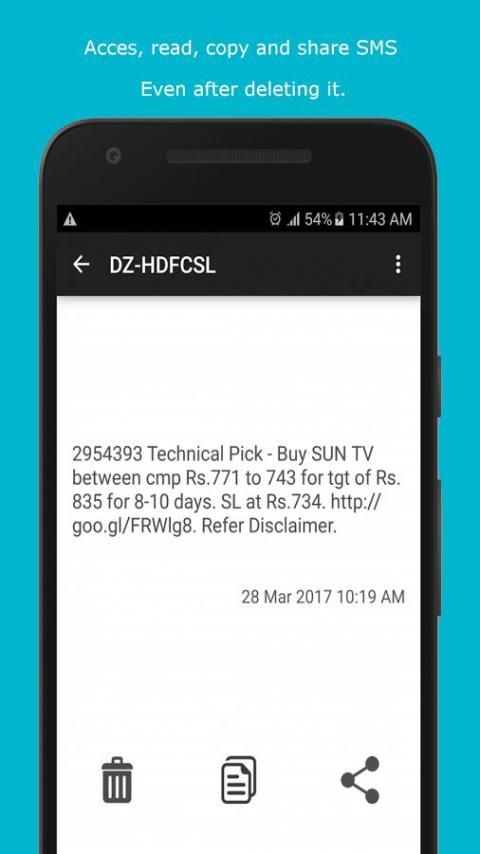 इस एप्लिकेशन को दुकानों कचरा जहाँ आप पढ़ एसएमएस फिर और किसी भी समय कॉपी कर सकते हैं में सभी हटाए गए एसएमएस।