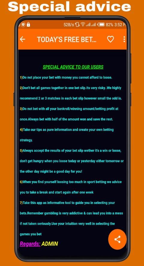 As we all know,gambling is highly addictive and can lead anyone into a serious mess if not taken care of.Following to that we discourage all members below the age of 18 years not to engage him/herself in betting or download this app.To those above the stated age limit,We urge you to take note of the money you use to bet with.We advice you NOT TO BET with school fees,house rent or family special funds intended for special occasions.Its much better and safer to bet only with money you can afford to loose.We also encourage all users to register with bookies offering CASH OUT option.This will help you to cash out/withdraw your money in case some of the games are messing your Betslip.its very important.