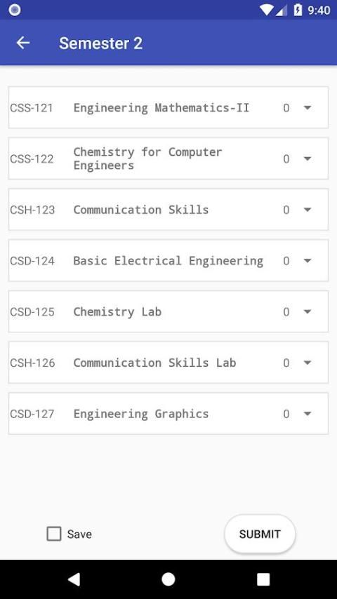 एसपीआई / भाकपा कैलक्यूलेटर उपयोगकर्ता से कॉलेज, बैच, बेशक, शाखा लेता है और उन्हें स्वचालित रूप से विषयों वे अपने विभिन्न सेमेस्टर में है देता है।