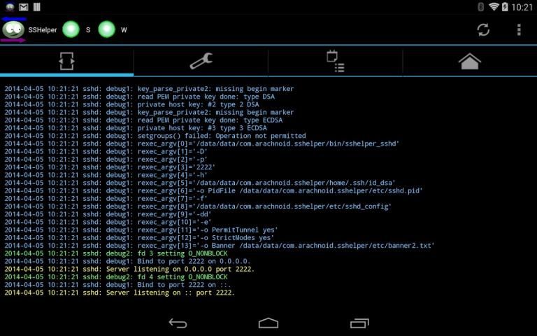 अधिक जानकारी और विन्यास सुझाव के लिए यात्रा - SSHelper मुख पृष्ठ http://arachnoid.com/android/SSHelper पर स्थित है।