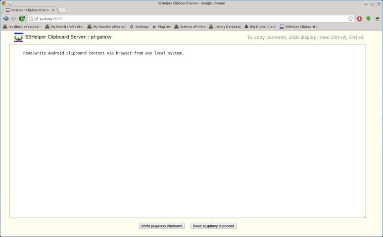 SSHelper भी स्थानीय नेटवर्क ब्राउज़र से एंड्रॉयड क्लिपबोर्ड करने के लिए पढ़ें / लिखें पहुंच परमिट एक क्लिपबोर्ड वेब सर्वर भी शामिल है।
