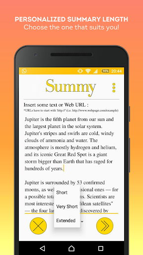 Want to read news or articles, but they are too long or don't have enough time? SUMMY creates personalized summaries for you to read or share!