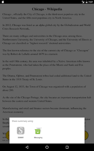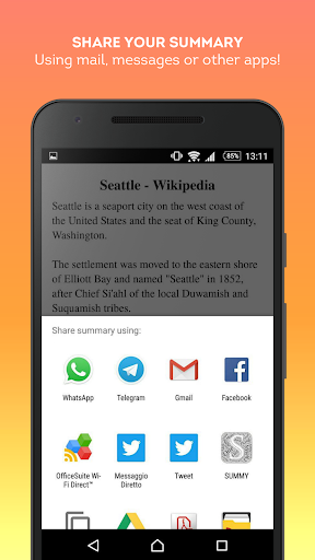 Once a summary is created, you can share it using messages, e-mails or any other App you have installed on your device!
